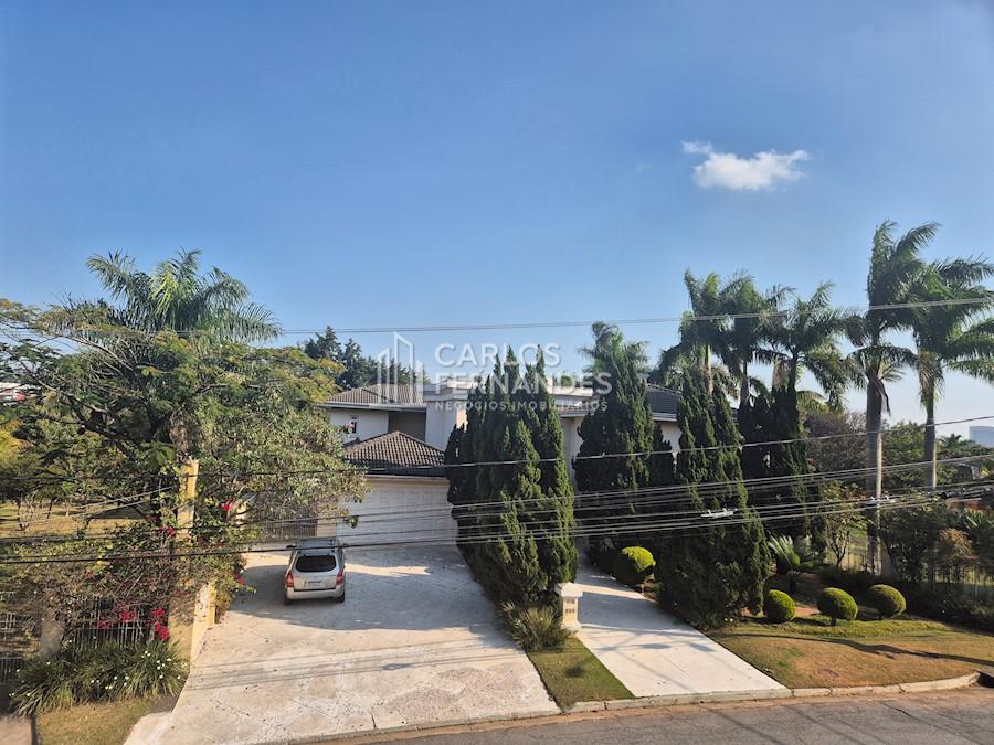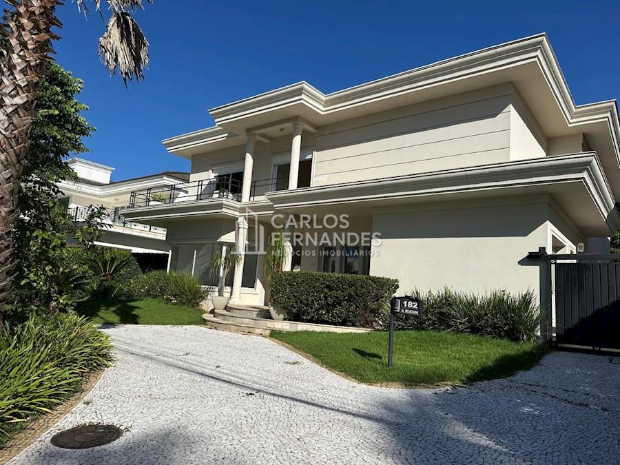 "Casa de bom padrão de construção implantada em dois lotes de terreno planos prefazendo 720 m2, com área construída de 579,88 m2 + 21 m2 de piscina (fora a área dos decks)! Dados de acordo com a carta liberatória emitida pelo condomínio para o habite-se após a reforma feita em 2008/09. Está localizada em uma das melhores áreas do condomínio, plana e perto da portaria e da área de lazer comum! Tem garagem interna coberta, com portão automático e espaço para dois carros. Possui também garagem externa com capacidade para pelo menos mais 2 carros, com laje superior e contígua à suíte principal, com potencial para aumento da casa. Tem aquecimento solar com placas de alta eficiência e também elétrico se houver necessidade. Tem capacidade de armazenamento de água de mais de 5 mil litros, possuindo até cisterna desativada, na parte exterior, caso venha a haver necessidade. Possui 4 suites grandes (3 com AC), sendo uma master com hidromassagem, sala de TV, sala jantar e visitas enorme para mais de dois ambientes, cozinha equipada, despensa, adega, hall de entrada grande, lavabo, jardim de inverno, suíte de empregada, sótão e varanda térrea com cobertura em vidro temperado. Na parte externa possui um enorme salão de festas com banheiro completo, lareira e escritório no piso superior, acessível por escada em caracol. Além de cobertura circundando toda a área, com telhado de vidro temperado. Possui área de lazer repleta de armários e completa com piscina, churrasqueira, forno e fogão. Além disso, tem dois quartos externos de arrumações, banheiro completo de apoio à piscina e uma área grande de terra onde estão plantadas árvores frutíferas e outras plantas. De salientar também a área verde na frente da casa e internamente, e a quantidade de plantas existentes, além do projeto de iluminação na fachada e internamente na área de lazer da casa. Também disponível para ser vendida com porteira fechada. E o condomínio, além de ser um dos mais arborizados da região, está muito bem servido de áreas de lazer comuns!